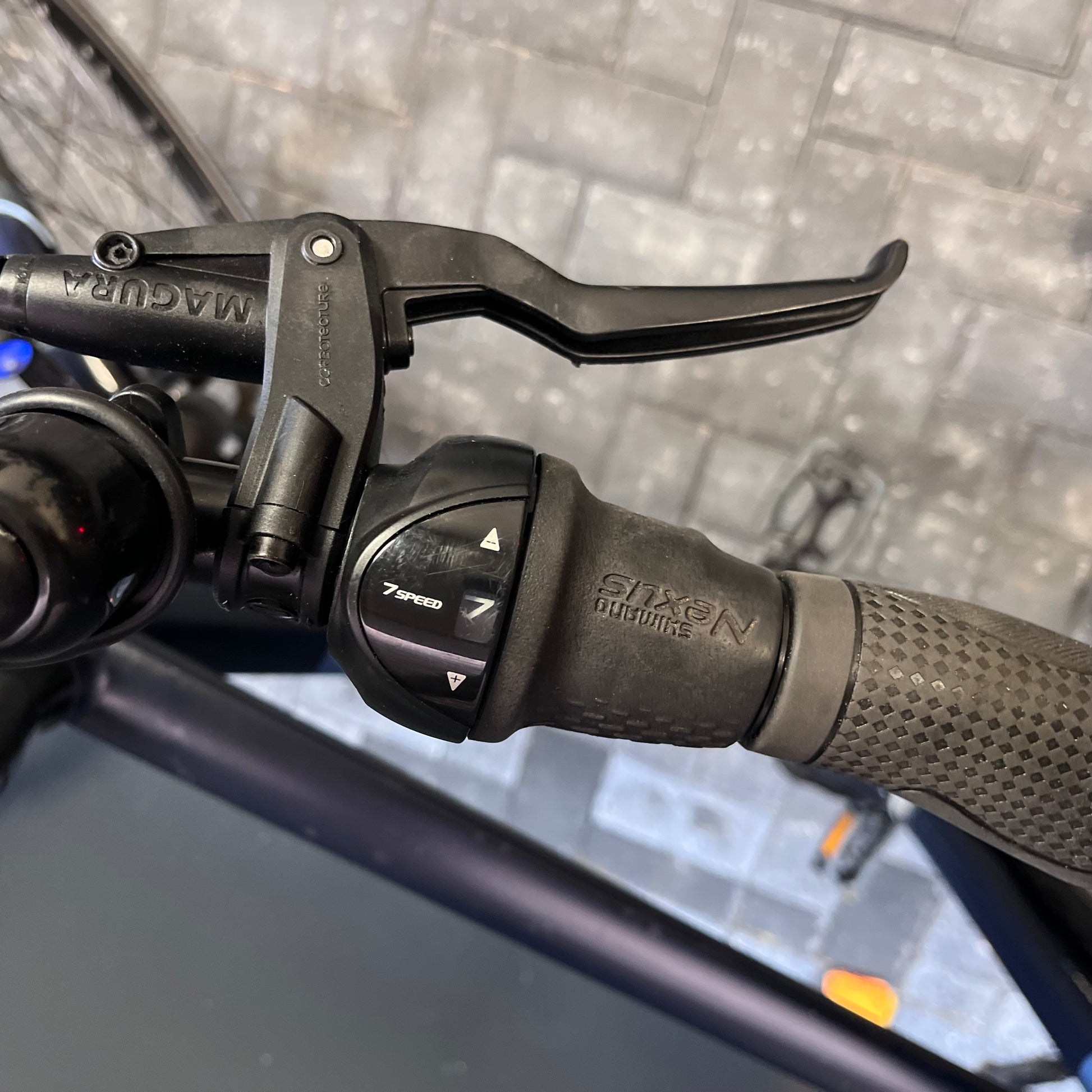 de fiets heeft wat krasjes in de lak, voornamelijk op de bovenbuis.